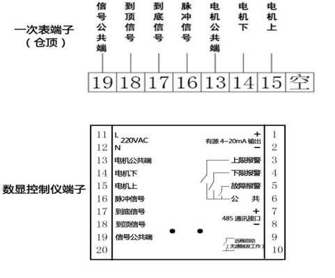 端子18:到頂信號,連接一次表18號端子;