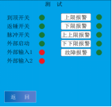 上電后系統(tǒng)對重錘系統(tǒng)進(jìn)行檢測,無故障后進(jìn)入主界面。如果重錘有故障,下方會出現(xiàn)手動進(jìn)入按鍵。按下后進(jìn)入《端口測試》界面,測試輸入輸出端口。